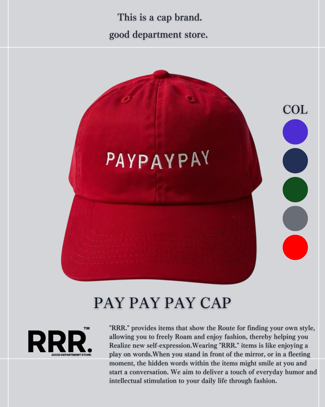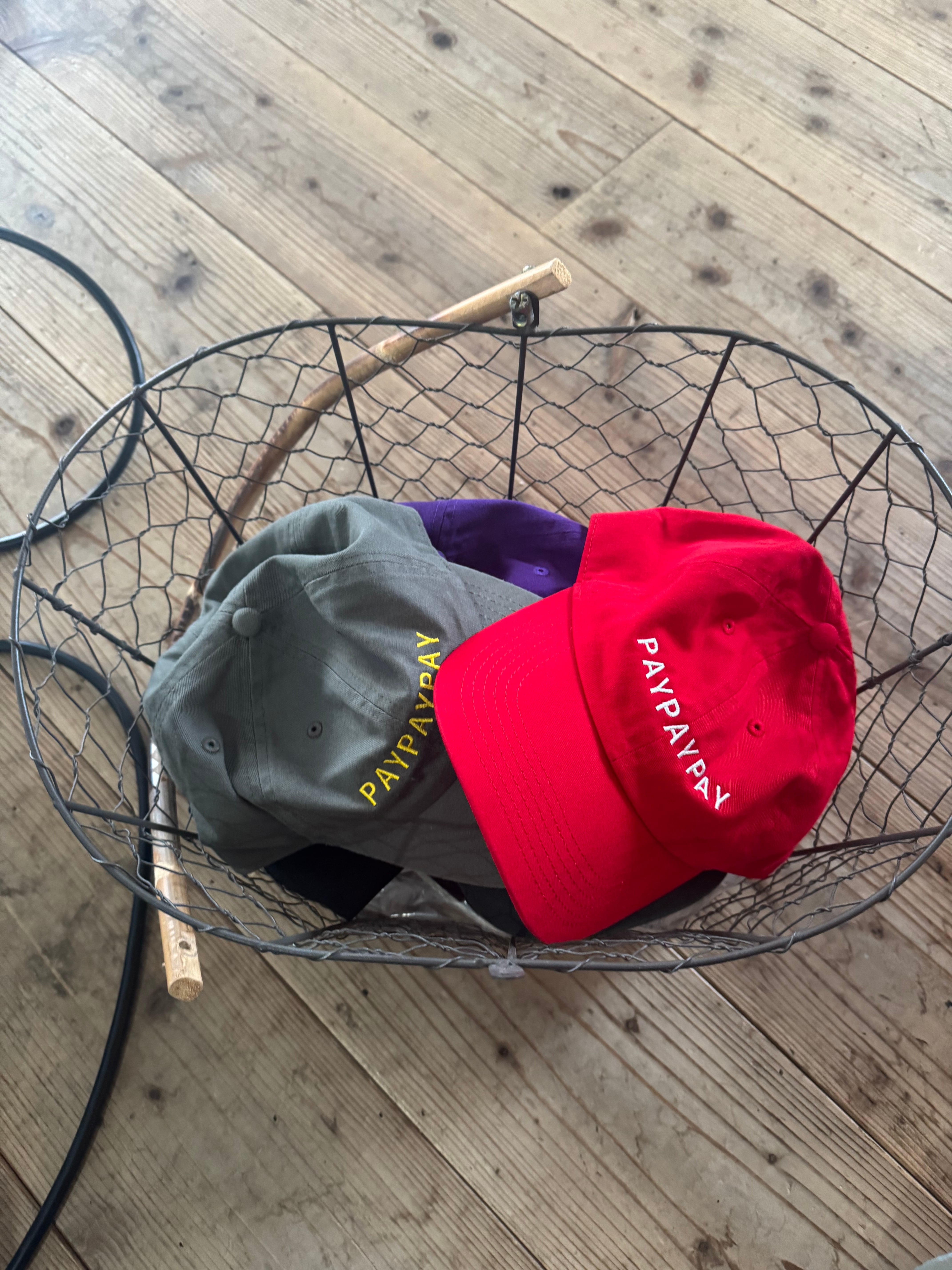 フロントに「PAYPAYPAY」の刺繍が施された、クラシックな6パネルのコットンキャップ