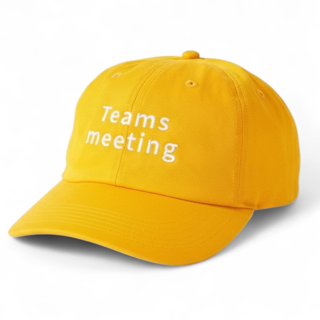フロントに「teams meeting」の刺繍が施された、クラシックな6パネルのコットンキャップ