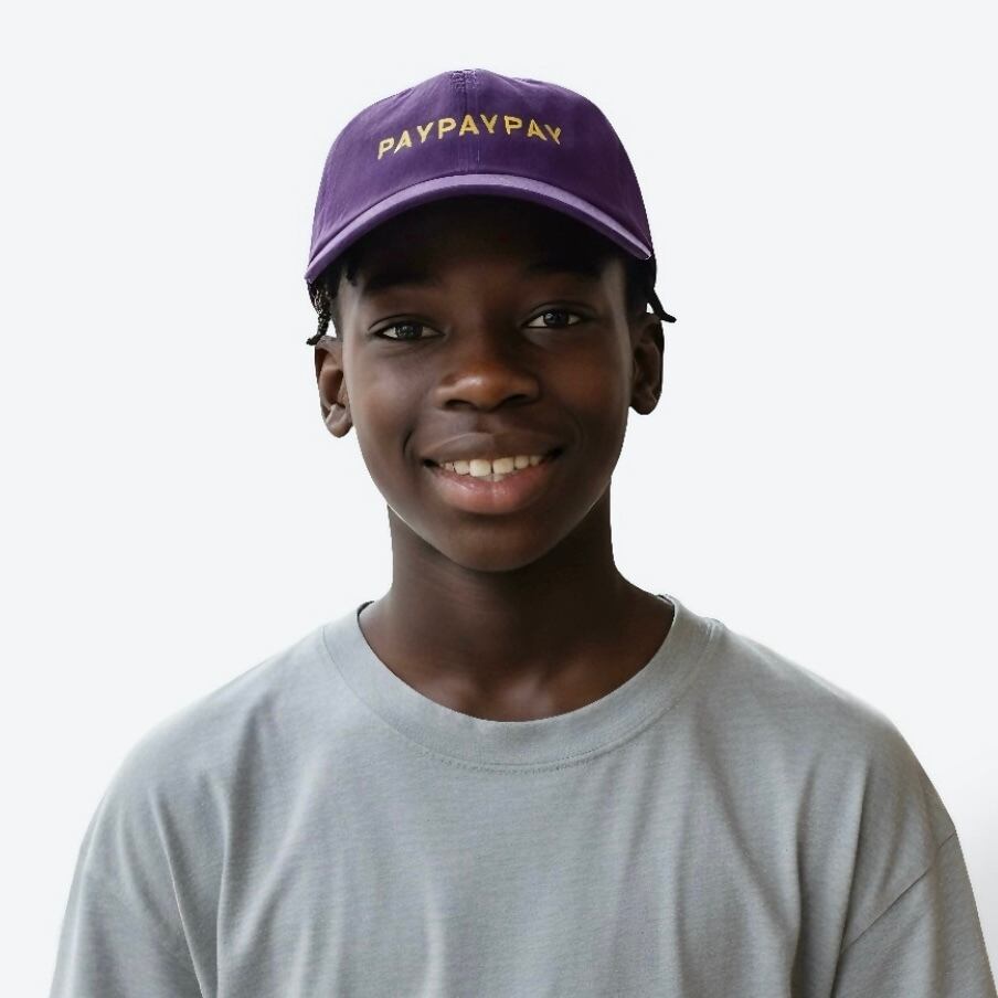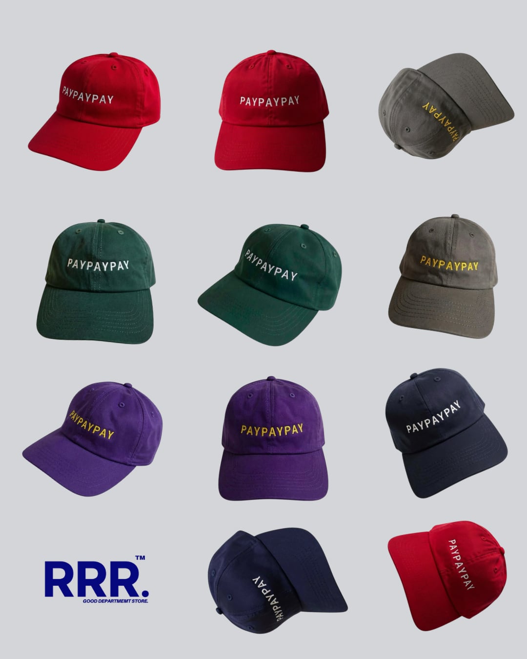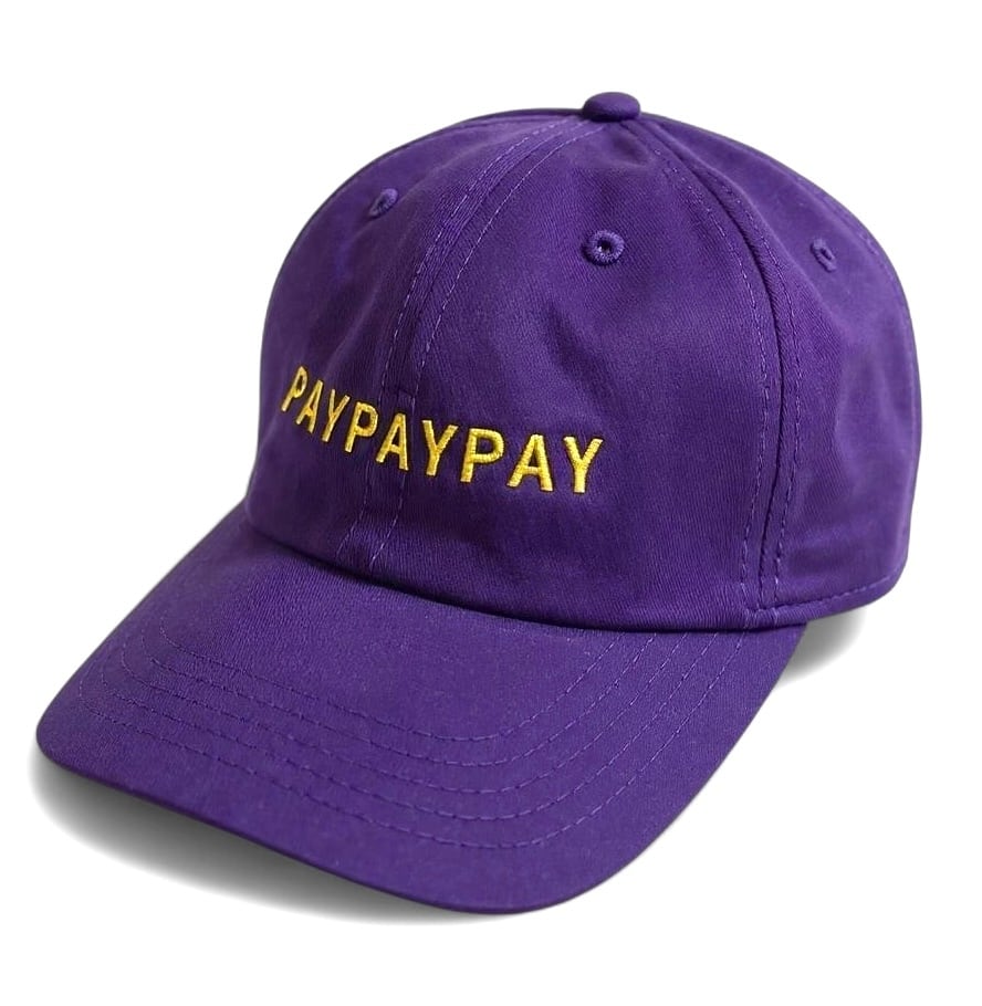 フロントに「PAYPAYPAY」の刺繍が施された、クラシックな6パネルのコットンキャップ