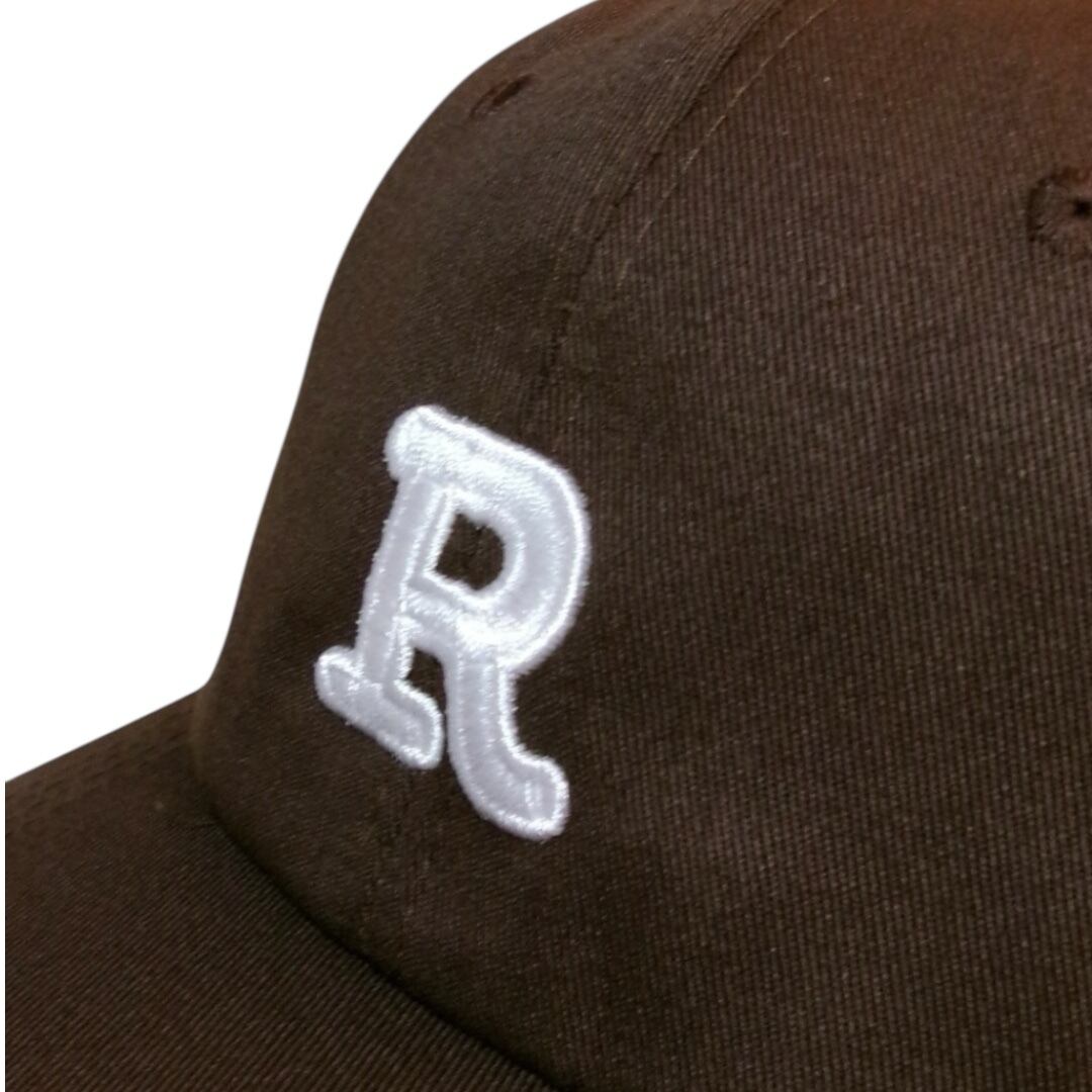 フロントに R の立体刺繍を施したロゴキャップ。